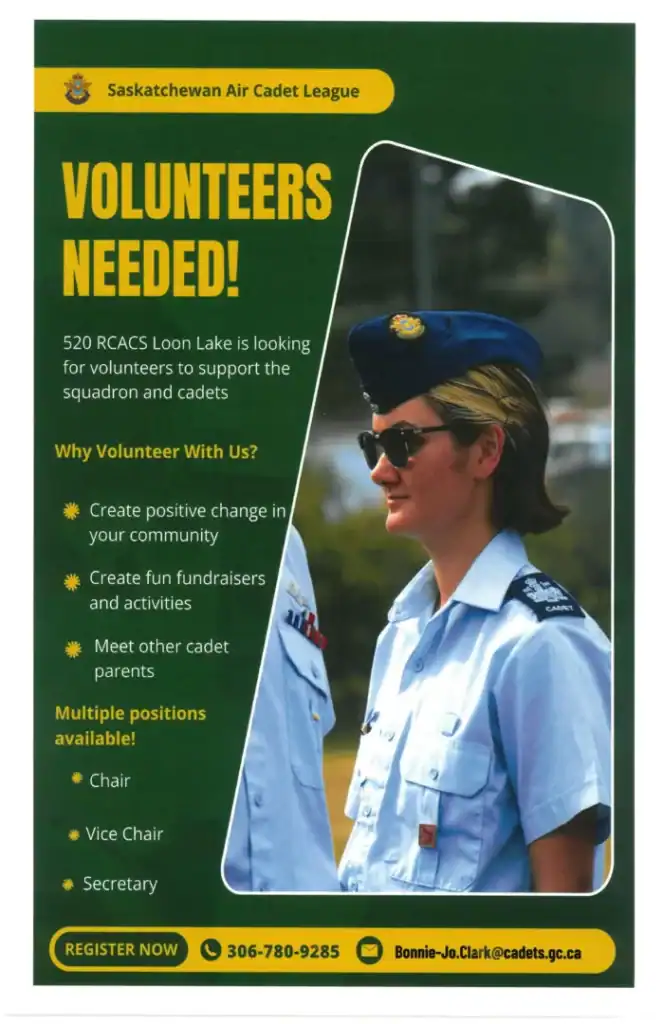 Loon Lake Air Cadets Volunteers NeededApril 13, 2026expired notices Loon Lake Air Cadets Ages 12-19 Meetings are Monday nights. Come Check Out This Amazing Opportunity https://www.canada.ca/en/department-national-defence/services/cadets-junior-canadian-rangers/cadets.html Previous Post Beach Coners Employment Opportunity