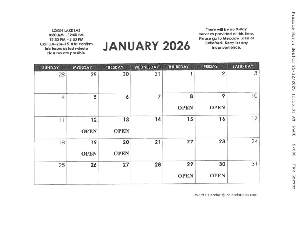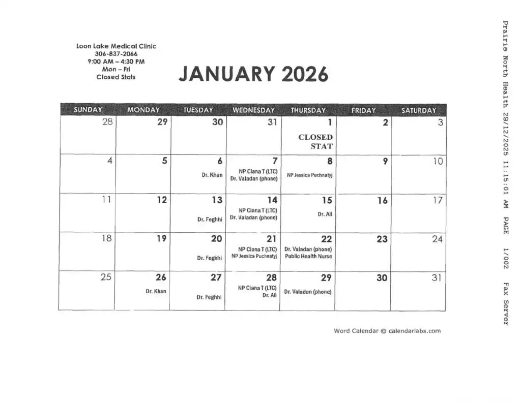 Loon Lake Clinic & Lab ScheduleDecember 29, 2025Bulletin January Clinic & Lab Schedule Previous Post No Bingo December 22nd, or December 29th