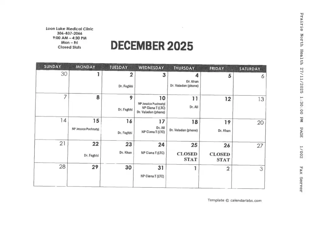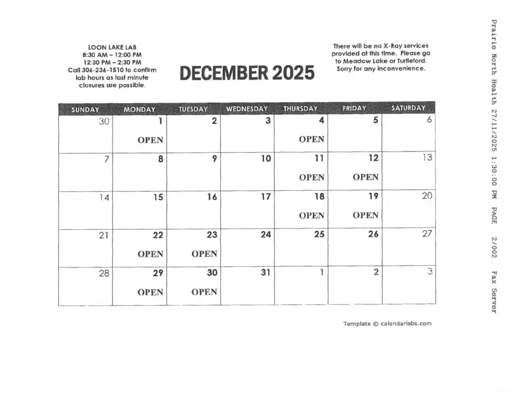Loon Lake Clinic & Lab ScheduleNovember 27, 2025Bulletin December Clinic & Lab Schedule Previous Post Loon Lake Special Care Home Christmas Silent Auction Next Post Loon Lake Community Carol Festival