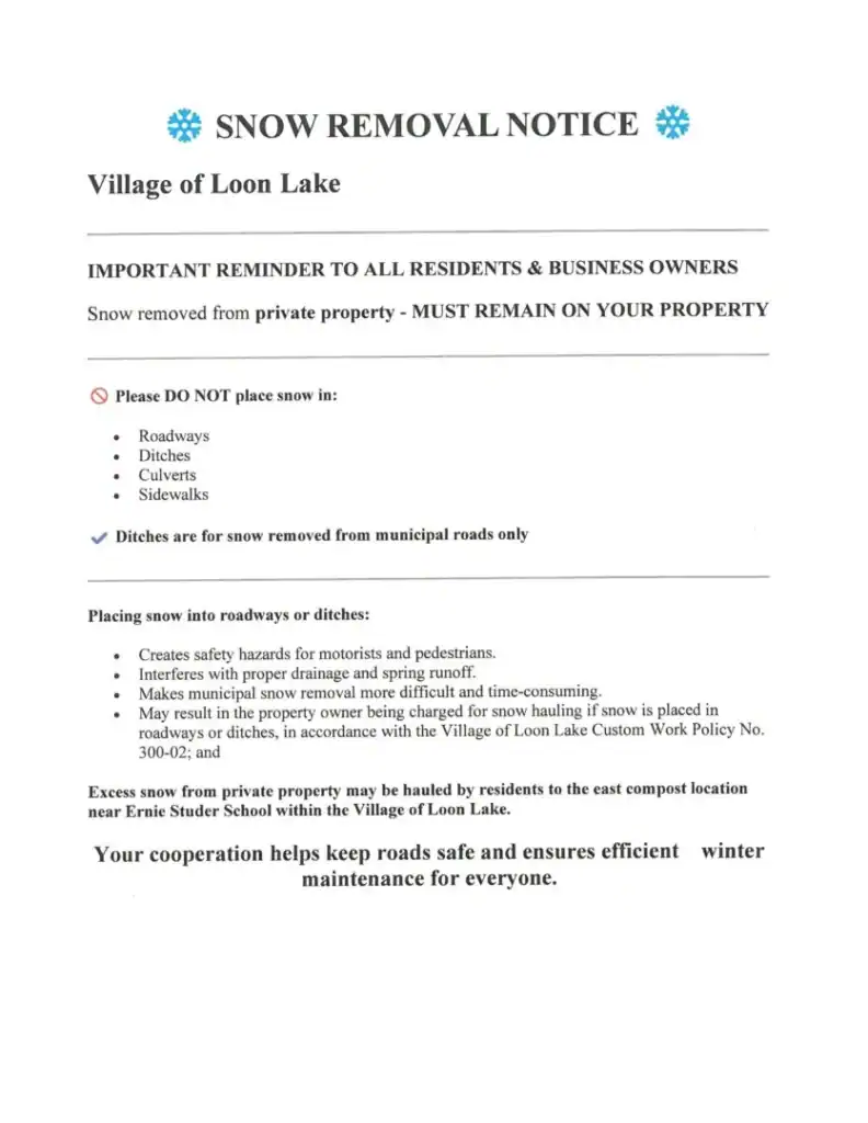 Snow Removal NoticeJanuary 13, 2026Notice Previous Post RCMP Community Update Next Post Dinner Theatre Meeting